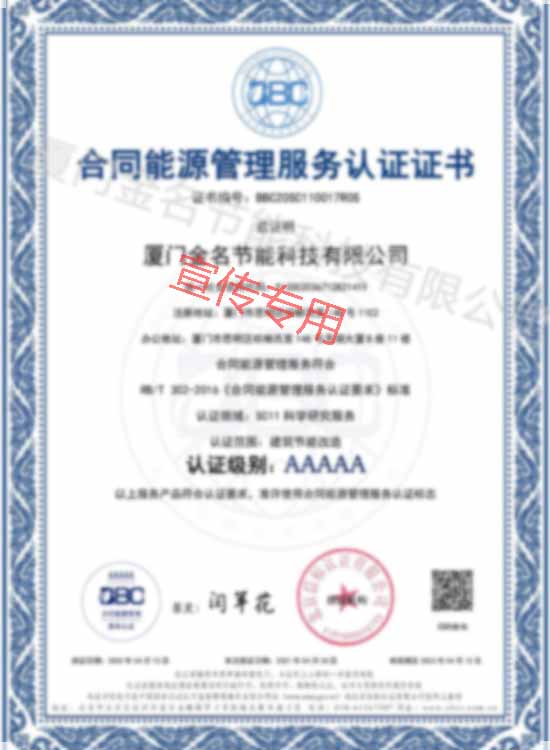 合同能源管理認(rèn)證證書